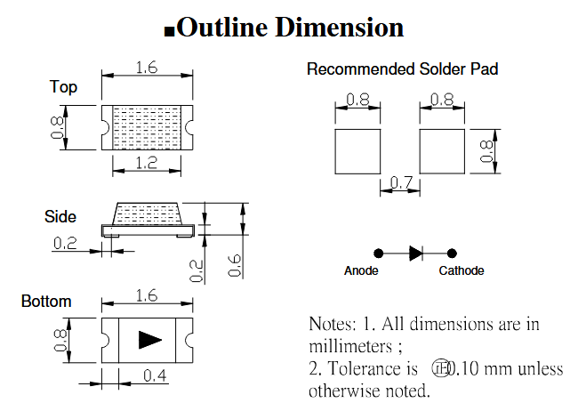 | Brightness: | 120mcd ~ 220mcd |