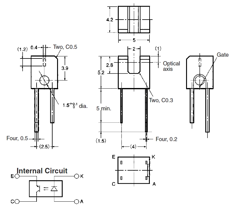 Photomicrosensor, slot-type, phototransistor output Slot width: 2mm, mounting: THT, If=50mA, Vce=30V, Ic=30mA, Pc=80mW, -25÷85°C
