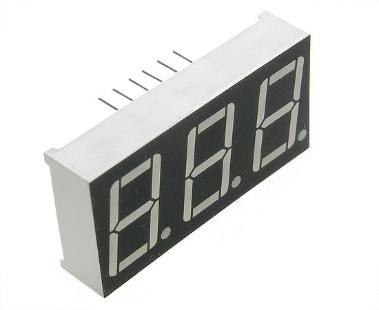 0.56" LED triple digit display; red (640nm); luminosity: 20 mcd; black background; common anode; IF=20mA; VF=2.0V; equiv.: BA56-1xSRWA, KW3-561ASB