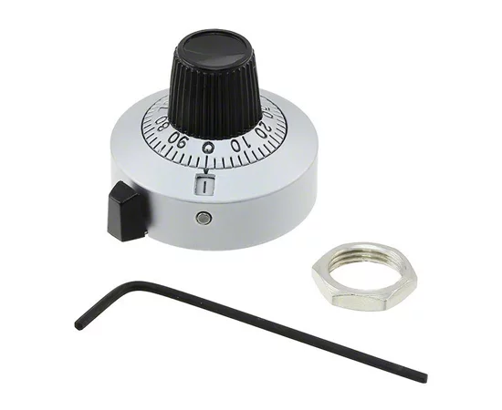 Knob with counting dial with brake function; shaft diameter: 6,35mm; grey; dimensions: 25.4x21.05mm; number of mechanical turns: 11