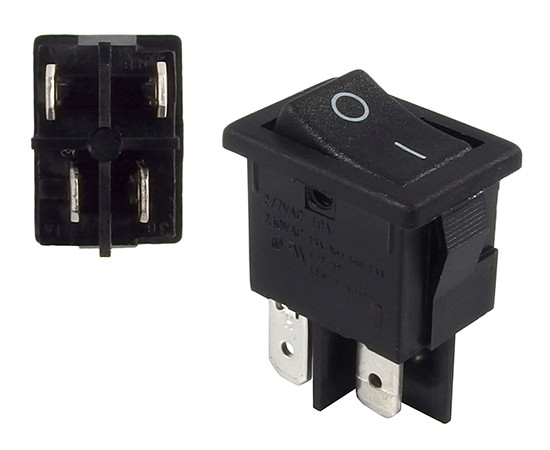 2 stable positions; ON-OFF; cap colour: black; DPST; 4P; 10A 250VAC; connectors 4,8x0,8mm; mounting hole diameter: 19.3x12.9mm