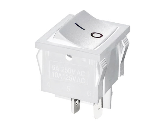 2 stable positions; ON-OFF; cap colour: white; housing colour: white; DP-ST; 4P; 6A 250VAC; endurance: 10000 cycles; operating temperature: -25°C+55°C