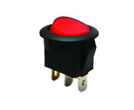 2 stable positions; ON-OFF; rocker red illumination; housing colour: black; SPST; 3P; 13A 125V; 6.5A 250V; endurance: 10000 cycles; operating temperature: -25°C+85°C
