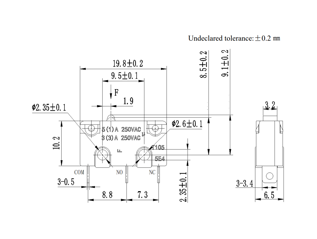 3A, 250VAC; ON-(ON); SPDT; 3P; without lever; IP40; Endurance: 100000 cycles; ambient temperature: -25°C+125°C