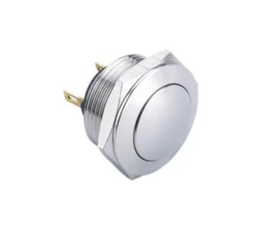 19mm; momentary; 1NO; brass; pin terminals; front shape-domed; 2A; 36VDC; IP65; electrical life: 200.000 cycles