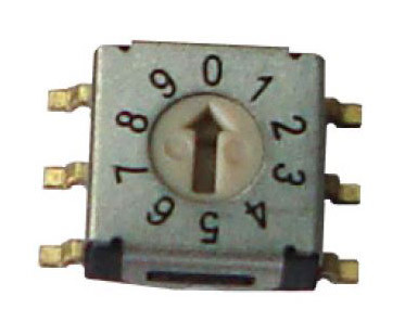 Rotary Coded Switch DEC/BCD, 10 positions, straight, flat, SMT,7.2x7.2x2.9mm 3+3 pin, 50VDC, 100mA, life 10000 steps oper. temp. -40 +85C