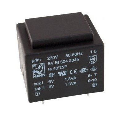 Encapsulated transformer; 2.6VA; 230V/2x6V; 2x217mA; Ta=70°C; H=27,3mm;