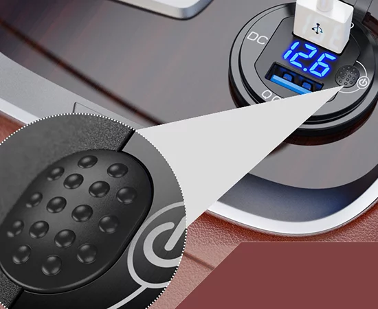 LED voltmeter with ON OFF switch; two USB QC 3.0 ports Voltage: 12-24V; without low voltage alarm