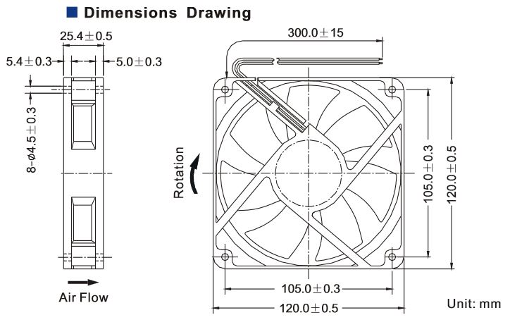 91,6CFM=154m3/h; 0,35A; 2400RPM; 44,0dBA; 30000h/25°C 2 wires AWG28, legnth about 300mm; Sunon equivalent EEC0252B2-000U-A99