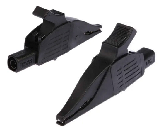 Crocodile clip; 32A; 1kV; Grip capacity up to 30mm; 92mm; 4mm; Black;
