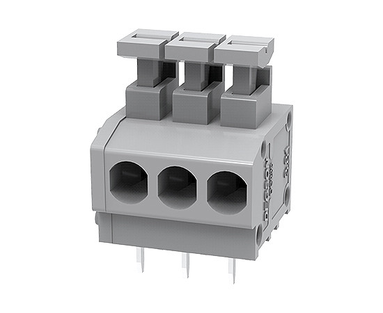 3 poles, pitch 3.81mm, heigth 15.5mm, gray colour, 300V, 5A, 20-18AWG; material PA66, UL94V-0 eqiv. WAGO 235-102, DINKLE 144RA-03P1, DECA MWX211-381, STELVIO MRT1