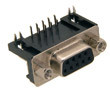 female; 9pin; for PCB, angled; standard; 9.4mm; metal housing; nickled; nickled, gold plated contacts, black insulator eqiv. DRB09MS, DHP9-09F