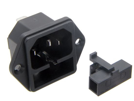 Male socket IEC for panel with fuse, screw, terminals 6.3mm IEC C14, rating voltage 10A/250VAC