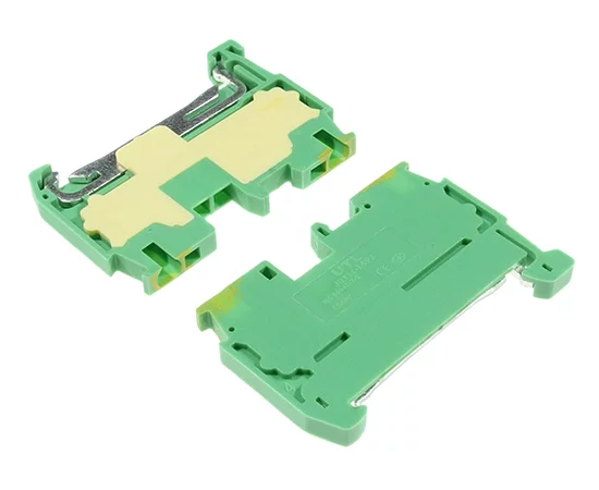 Din Rail Terminal Block, 17.5A, wire range: 24-16 AWG, yellow-green color L/H/W, (46.9/34/4.2mm), material: PA66 UL94 V-0