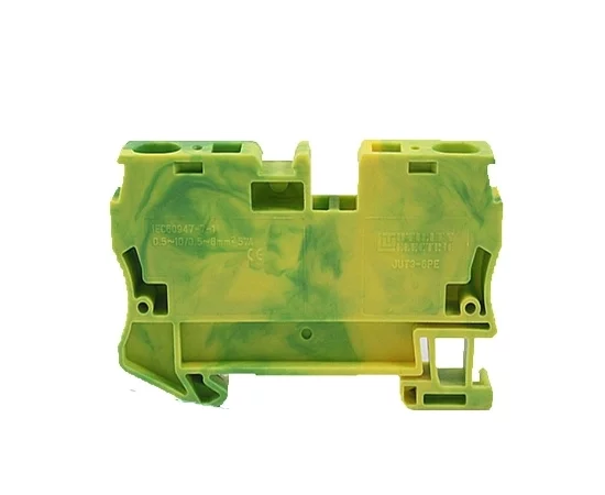 Din Rail Terminal Block, 57A, wire range: 24-10 AWG, yellow-green color L/H/W, (70.1/42.4/8.2mm), material: PA66 UL94 V-0