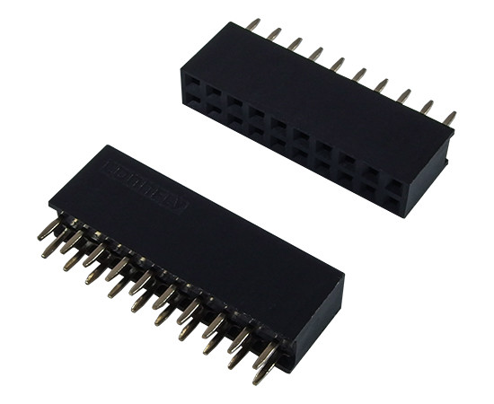female; dual row 2x10pin, staright, p.2.54mm, PCB, gold contact; for ”box header” mating