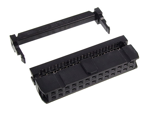 Female 26pin IDC, pitch 2.54mm for ribbon cable 1.27mm, black color, with fastener, gold flash contacts eqiv. IDC-26, IDC26, AWP-26, IDC26-LF