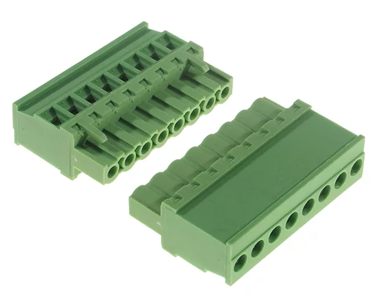 8 poles; pitch: 5.08mm; green color, 320V; 12A; 24-12AWG; angled, contacts: tin plated