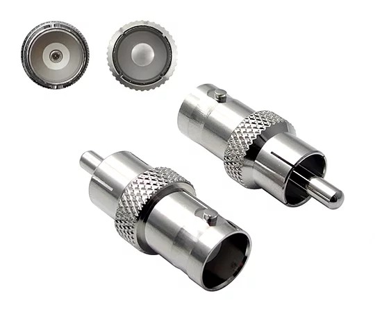 Adapter plug RCA / BNC socket insulator: derlin, body and pin brass nickel plated