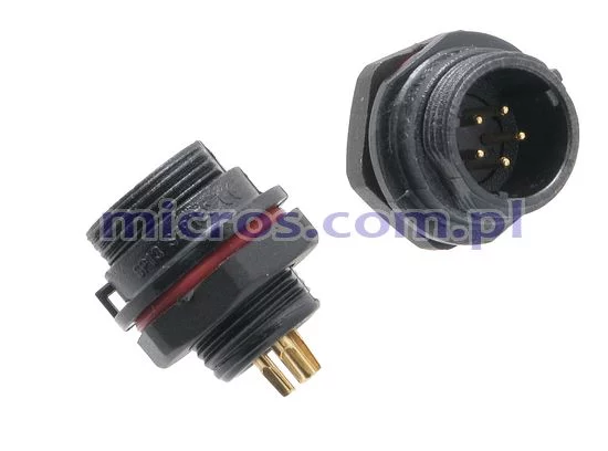 Male connector, circular, 5pin screwed, for panel mounting, IP68, 180V, 5A, mate with SP1310; external thread;