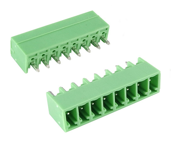 8 poles; pitch: 3.5mm; height: 9.1mm; green color, 300V; 8A, straight, mates with TLPS001 / TLPSZ001 3.5mm solder pin: brass, tin plated; eqiv. MCV 1,5/ 8-G-3,5; 1843664; 15EDGVC-3.5-08P