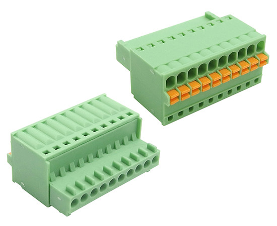 10 poles; pitch: 2.5mm; height: 17.5mm; green color, clamp type, 150V; 4A, 26-20AWG; straight clamp: phosphore bronze, nickel plated; clamping: stainless steel; eqiv. FK-MC 0,5/10-ST-2,5; 1881406; 15EDGKD-2.5-10P