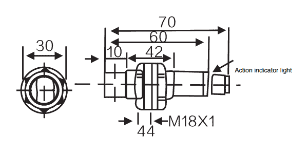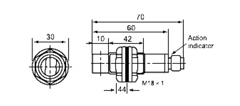 Photoelectric | Reflective | 10÷30cm | NPN/NC | 10÷30VDC | M18, Cylindrical | Lead 2m | 200mA | -25°C ~ 55°C | Plastic | IP54 | ||||||||||||