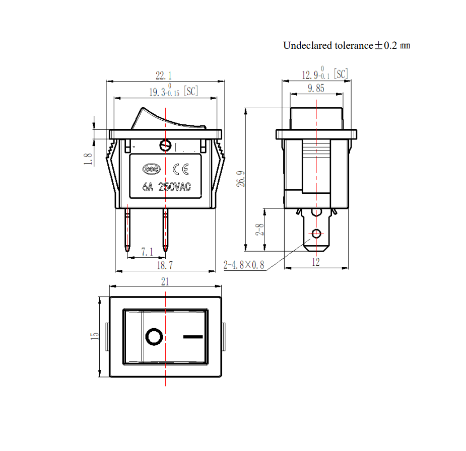 6A 250VAC | DPST | N/A | ON-OFF | -25°C ~ 55°C | Rocker | N/A | Red | Black | ||||||||||||||||||||||||||||||||||||||||||||||||||||||