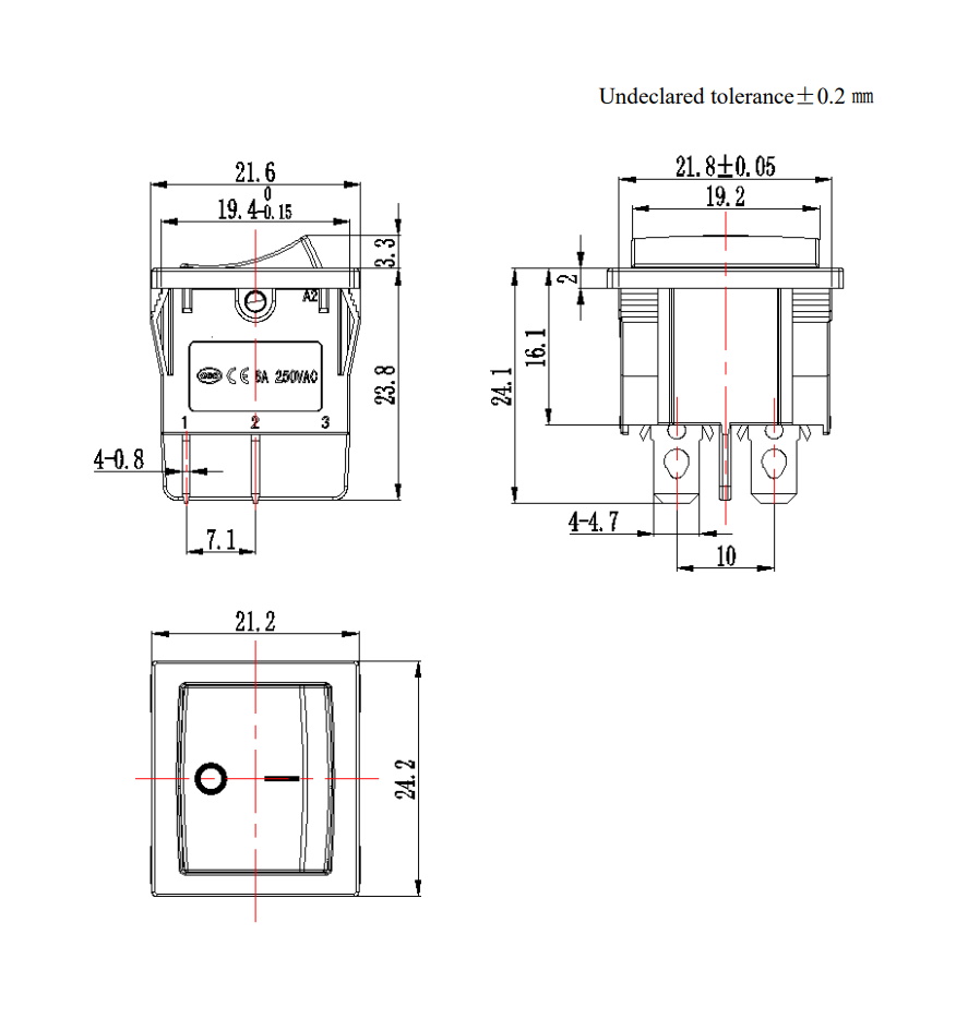 6A 250VAC | DPST | N/A | ON-OFF | -25°C ~ 85°C | Rocker | N/A | Red | Black | ||||||||||||||||||||||||||||||||||||||||||||||||||||||