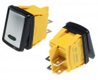 2 stable positions; ON-OFF; rocker green illumination; housing colour: yellow; IP68; 4 wires 20cm; 20A 125VAC; endurance: 20000 cycles; operating temperature: -25°C+85°C