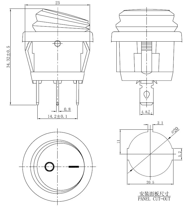Red | ON-OFF | 20A 125V 15A 250V | Red | Black | N/A | Button | N/A | -25°C ~ 85°C | ||||||||||||||