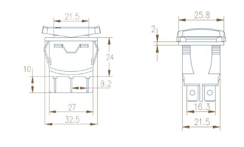 2 stable positions; ON-OFF; rocker blue illumination; housing colour: black; SPST; 3P; 10A 125V; 6A 250V; endurance: 10000 cycles; operating temperature: -25°C+85°C