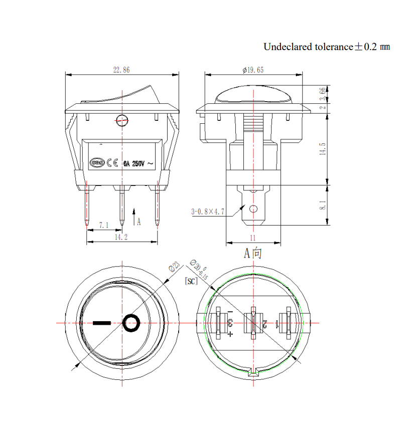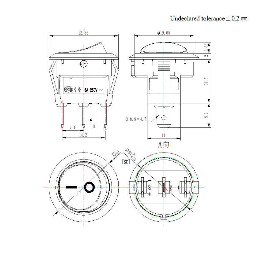 SPST | Green | ON-OFF | 6A 250VAC | Black | N/A | Button | N/A | -25°C ~ 85°C | |||||