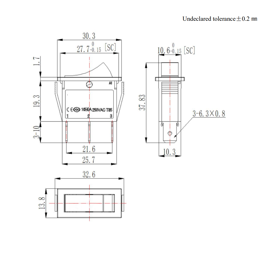 3 stable positions; ON-OFF-ON; SPDT; 3P; 3A 125VAC or 1.5A 250VAC; endurance: 10000 cycles; ambient temperature: -20°C+85°C