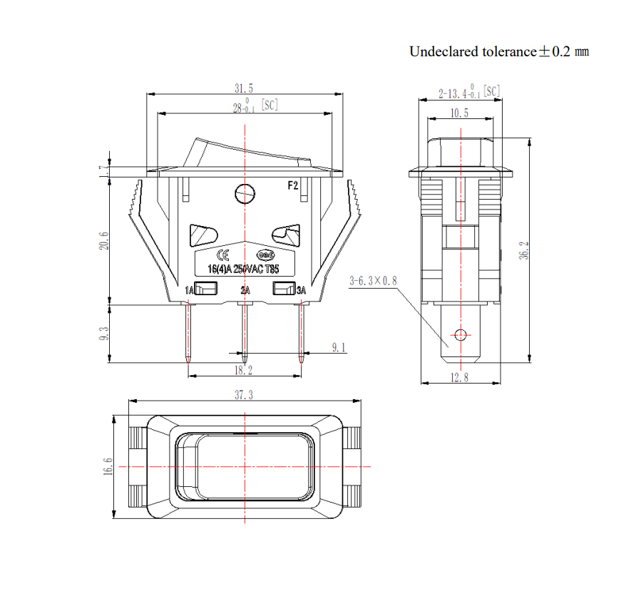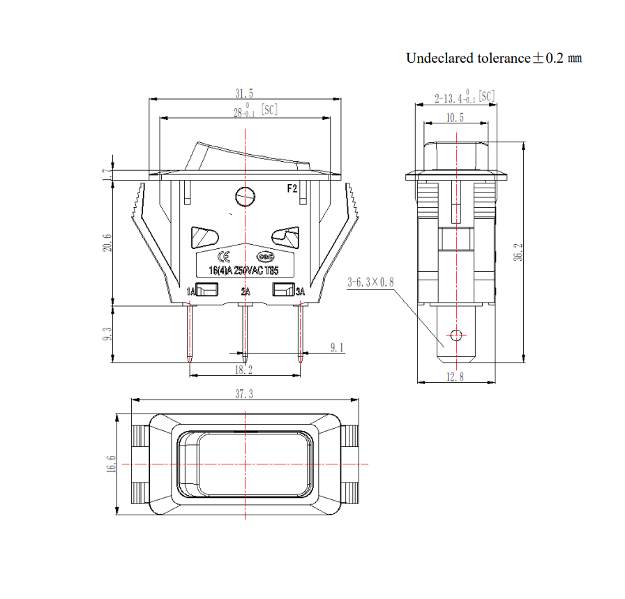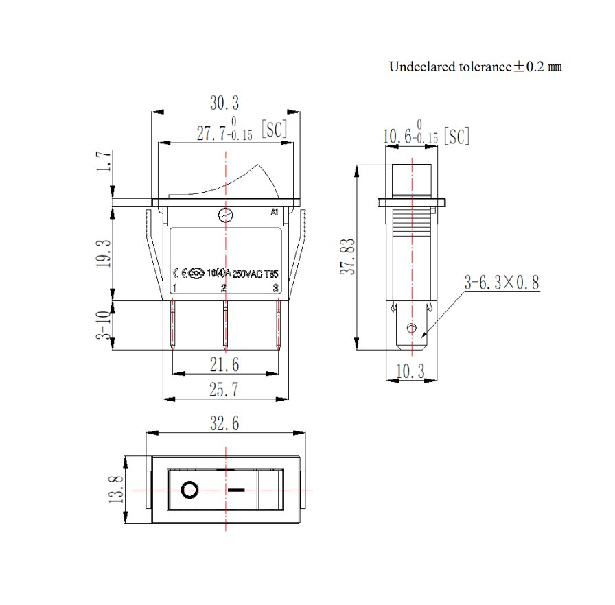 Red | SP3T | ON-OFF | 16A 250V | Bulgin | Rocker | N/A | Black | Connectors (6,3x0,8mm) | |||||||||||||