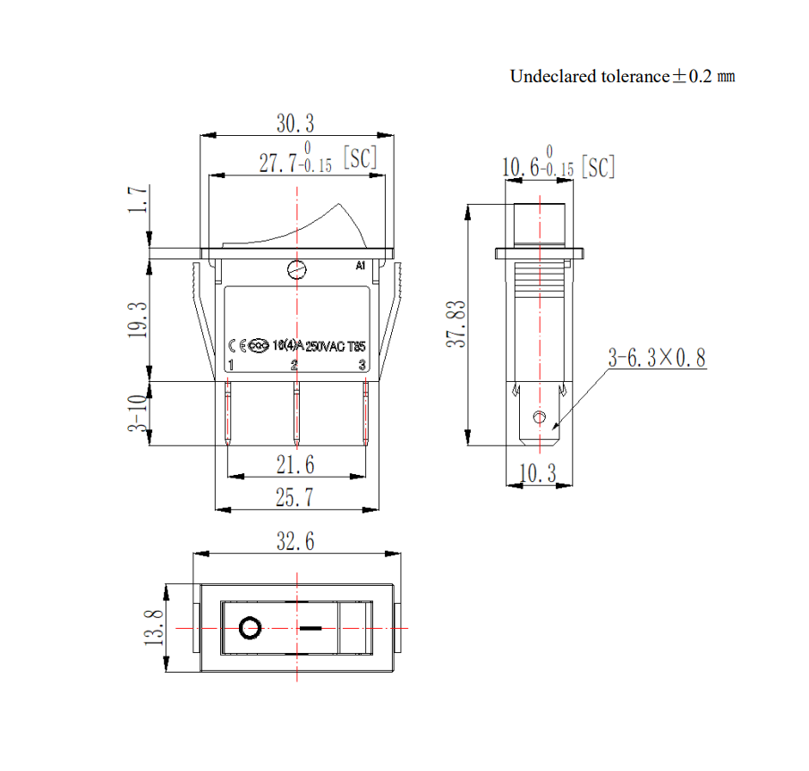 Red | DPST | ON-OFF | 10A 125VAC 250VAC | N/A | Rocker | N/A | -10°C ~ 85°C | Black | |||||||||||||