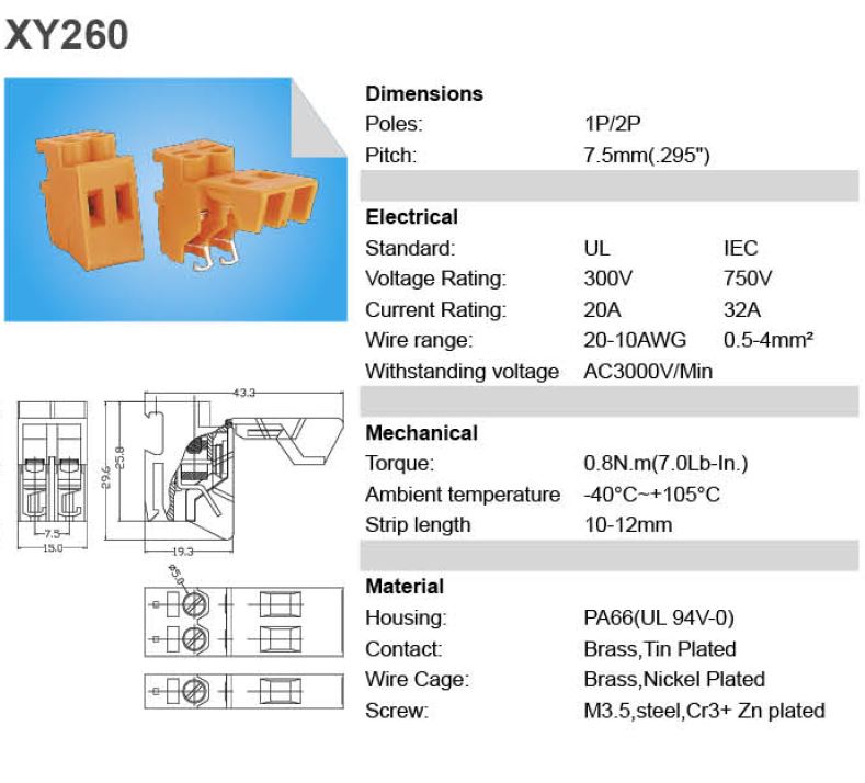 XY260-2P XINYA Terminal block