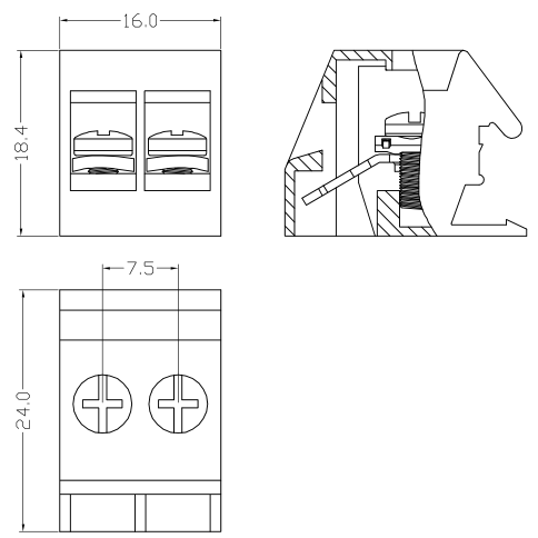 2 poles; pitch 7,5mm; height: 18.4mm; orange colour; 300V, 10A, 24-14AWG, housing PA66(UL 94V-0)