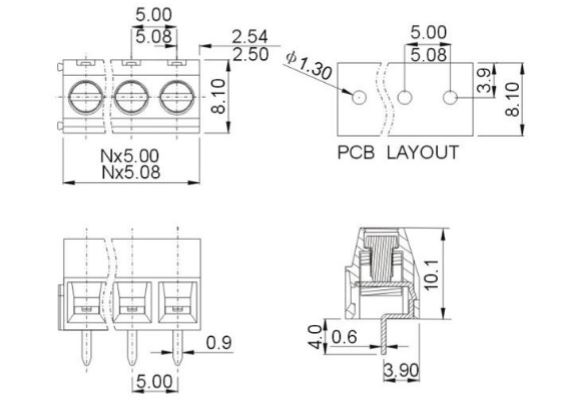 DEGSON Symbol Producenta: DG130-5.08-03P-14-00A(H) Obudowa dokładna: Rys.DG130-5.08/3 |
