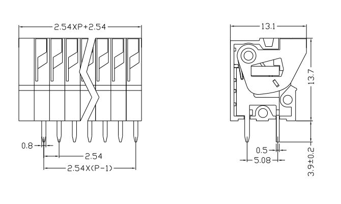 XINYA | Zielony | 2,54mm | 13,7mm | 2 | ||||||||||||