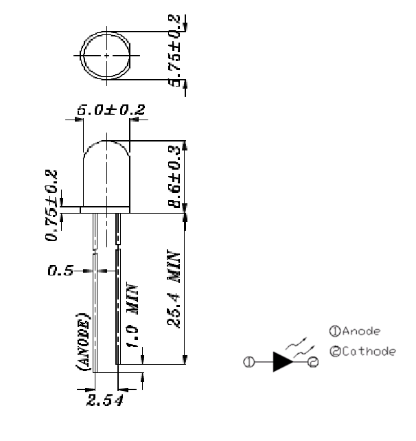 LED THT; czerwony; jasność: 400-800mcd; kąt świecenia: 25°; prąd przewodzenia: 25mA Długość fali: 624-632nm; napięcie pracy: 2-2,4V