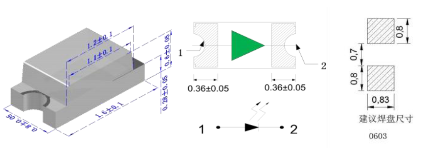 LED SMD 0201 niebieski; jasność: 40-100mcd; prąd diody: 5mA Długość fali: 465-475nm; kąt świecenia: 120°; napięcie: 2,6-3,4V