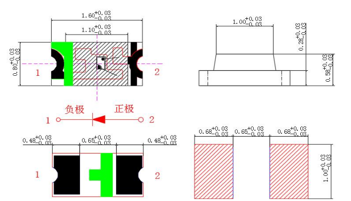 LED SMD 0603 czerwony; jasność: 100-150mcd; prąd diody: 20mA Długość fali: 620-625nm; kąt świecenia: 120°; napięcie: 1,8-2,2V