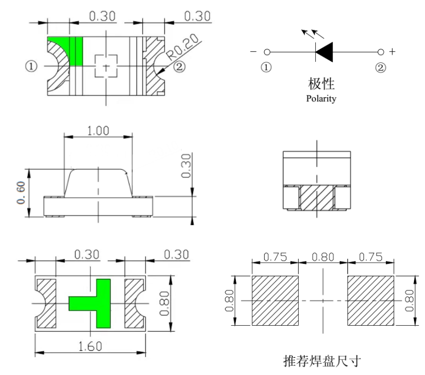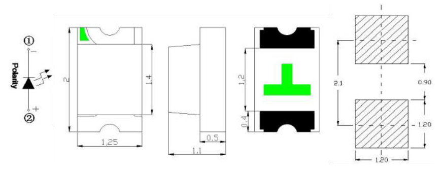 LED SMD 0201 szmaragdowy; jasność: 150-350mcd; prąd diody: 5mA Długość fali: 525nm; kąt świecenia: 120°; napięcie: 2,6-3,2V