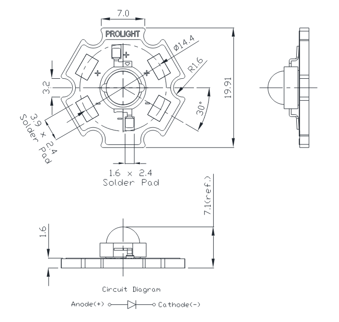 ProLight Opto | 8mm | Biały ciepły | 110lm ~ 138lm | 1W | 350mA | 130° | 2,85V ~ 3,85V | 2850K ~ 3250K | -40°C ~ 90°C | ||||||||||||||||
