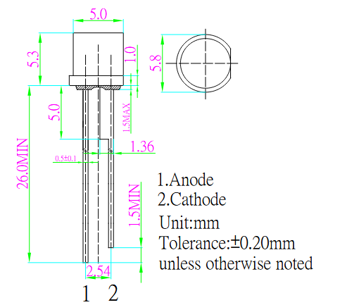 410~420nm | 3,0~3,8V | UV | 15° | 30mA | -30°C ~ 85°C | 5mm | 2mW ~ 6mW | THT | ||||||||||||||||||||||||||||||||||||||