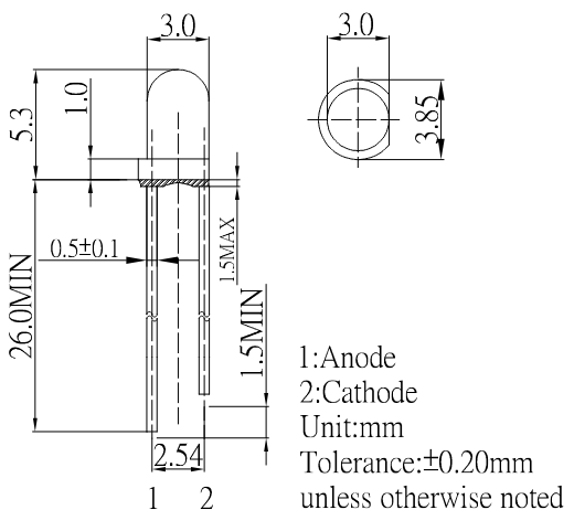 2810~3000mcd | 3~5V | 530nm | Zielony | -30°C ~ 85°C | 20mA | 3mm | THT | LED | ||||||||||||||||||||||||||||||||||||||