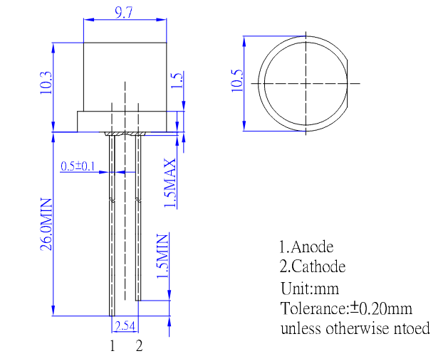 LED THT; 2mm; czerwony; jasność: 5-10mcd; kąt świecenia: 70°; prąd diody: 20mA Długość fali: 625nm; dyfuzyjna; rasert wyprowadzeń: 2,54mm; napięcie pracy: 2-2,5V