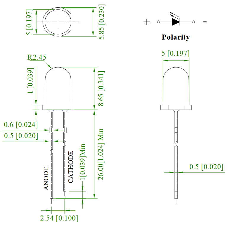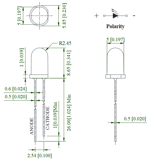 LUCKY LIGHT Symbol Producenta: 503GC2E-2BC RoHS Obudowa dokładna: Rys.OLY.5c0060 |