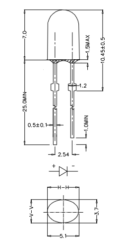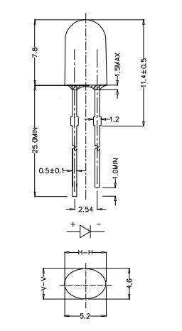 | Żółty | 585nm ~ 595nm | 7000 mcd | 20mA | 30° | 2,1V | 1,8-2,4V | 590nm | -40°C ~ 85°C | THT | 5mm | ||||